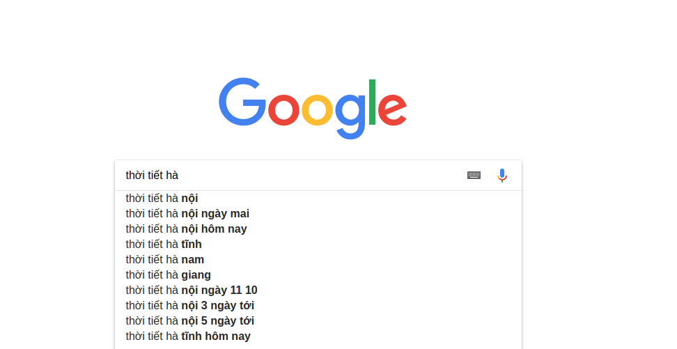 Ví dụ một cách đơn giản các bạn có thể nhìn thấy như câu ở trên, với đầu vào là "thời tiết hà" thì xác suất của từ/cụm từ tiếp theo "nội" và các từ như "tĩnh", "giang" sẽ cao hơn xác suất của nhiều từ khác.