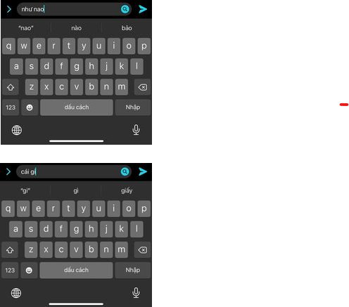 Như minh họa ở trên, từ "nao" đã được gợi ý thành "nào" hoặc "bảo", còn từ "gi" được gợi ý thành "gì" hoặc "giấy".