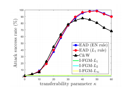 càng tăng thì độ an toàn của tấn công càng lớn, và các adversarial example này sẽ càng có khả năng transfer — chúng có thể được sử dụng trên một model khác train cùng task cùng data.