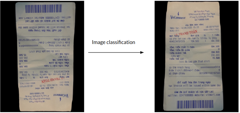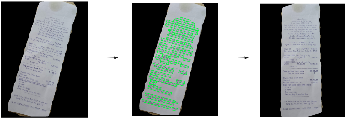 Sau khi nhận được dữ liệu thì mình cùng team đã tiến hành phân tích và thấy rằng dữ liệu có rất nhiều nhiễu và đòi hỏi phải xử lí nếu không muốn kết quả tệ đi. Dữ liễu sau khi phân tích thì nhận thấy rằng nó rất nhiều nhiễu như background ảnh nhiễu lớn, hóa đơn nghiêng, cong, ngược, ngang, nhàu, .... Dưới đây mình sẽ thực hiện cách để giải quyết những vấn đề trên: