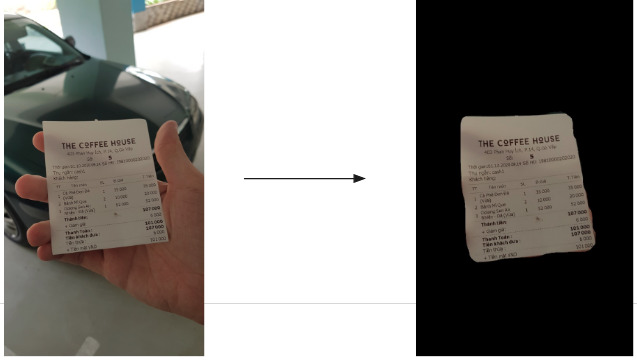 Vì ảnh hóa đơn nhỏ, có màu tách biệt với màu nền và chữ cái sát viền nên việc cần nhận dạng đúng từng pixel là rất cần thiết nên mình lựa chọn phương pháp segmentation để có thể loại background một cách tốt nhất.