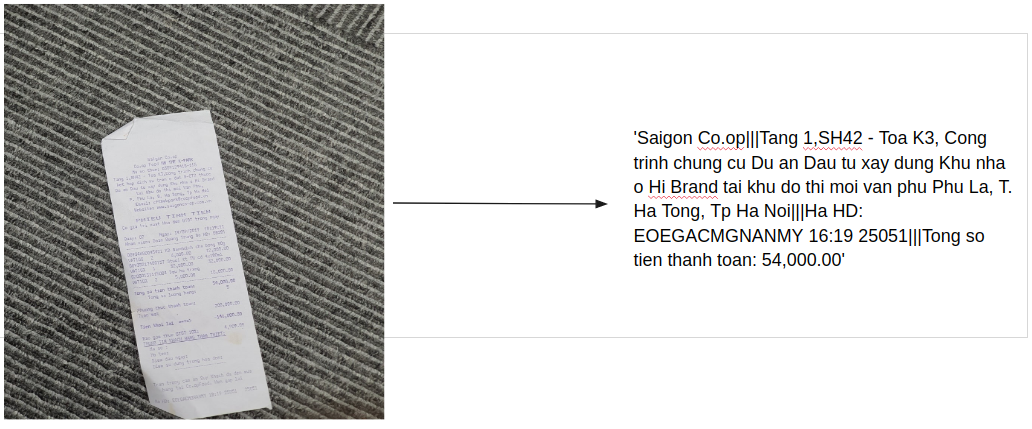 Phần này may quá là BTC có cung cấp dữ liệu, nhưng chỉ annotated các box chứa các trường SELLER, SELLER_ADDRESS, TIMESTAMP, TOTAL_COST dữ liệu là quá ít để có thể train from srath. Gần đây thì thư viện VietOCR đã được public ra cộng đồng và cho kết quả khá tốt trên dữ liệu tiếng Việt. Do đó bọn mình sử dụng model pre-trained VIETOCR để fine-tunning với dữ liệu mà BTC cung cấp, điều này cho kết quả tốt hơn so với chỉ dùng pre-trained (Model mà mình lựa chọn là TransformerOCR, nếu bạn đang không rõ về nó là mô hình gì thì có thể tham khảo tại đây nhé ). Đây là link thư viện VietOCR, tác giả cũng đã có một tutorial trên notebook để hướng dẫn cách train model nhé, các bạn có thể tham khảo ở đây.