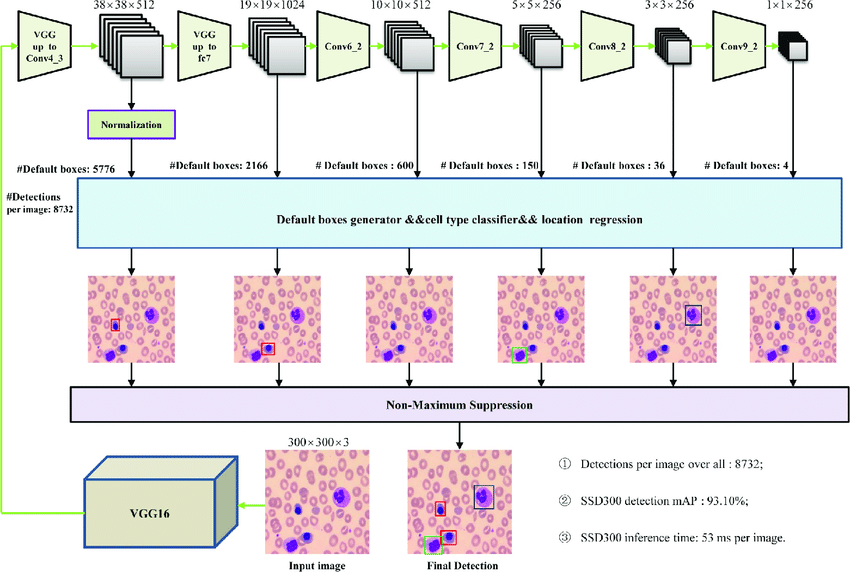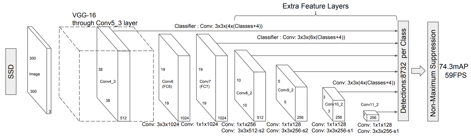Kiến trúc chung của một mô hình SSD sẽ gồm 2 phần chính, bao gồm: Backbone, Detector. Trong đó, backbone đóng vai trò trích xuất ra những đặc trưng của ảnh, từ high resolution features cho đến low-resolution features tương ứng với mức độ quan trọng của features. Các high-resolution features thường mang các đặc tính như các edge, boudary, còn low-resolution features thường mang các đặc tính như shape object, global context của ảnh. Nhiệm vụ của các backbone rất quan trọng, nó ảnh hưởng rất nhiều đến độ chính xác ở các layer detectors phía sau. Ở hình trên: tác giả sử dụng backbone là VGG-16, một mô hình rất sâu đủ khả năng trích xuất được các đặc trưng quan trọng, tuy nhiên chúng ta đều biết lượng tham số mô hình của VGG là rất lớn, do vậy trong một vài trường hợp, mang tính trade-off giữa độ chính xác và thời gian thực thi chúng ta hoàn toàn có thể thay đổi các backbone này như MobileNet (V1, V2, V3) .