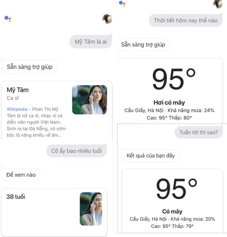 Nhìn qua một chút thì có vẻ khá nhiều, thực sự nhiều. Bạn có thể dùng giọng nói của mình yêu cầu trợ lý ảo của Google tìm kiếm một truy vấn, tra cứu, lên lịch hẹn, đặt lịch, kiểm soát các công việc trong ngày, gợi ý địa điểm dịch vụ như ăn uống, xem phim gần nhất, điều khiển một vài ứng dụng trên điện thoại, gọi điện nhắn tin cho ai đó, gửi mail, xem giá cổ phiếu, mua vé máy bay,... rất nhiều những tính năng được hỗ trợ. Thậm chí bạn có thể hỏi nó một câu kỳ hay chỉ là nói chuyện phiếm cho đỡ buồn. Tất cả chỉ bằng một câu lệnh, bằng chính ngôn ngữ mẹ đẻ của chúng ta.