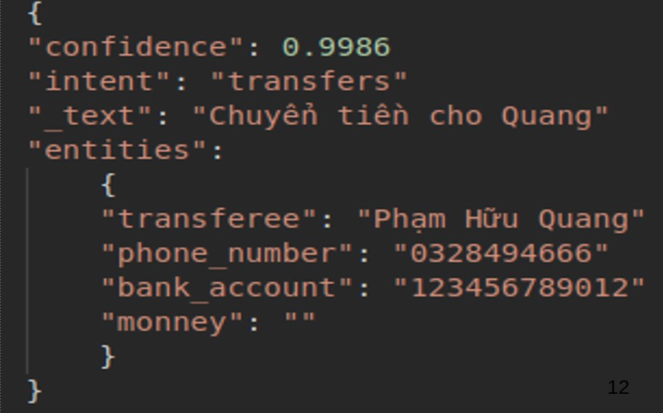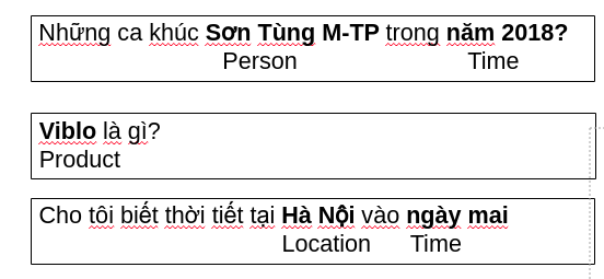 Ngoài ra, bên cạnh phát hiện được ý định của người dùng, Voice cần trích xuất được thông tin theo mẫu sẵn cho từng intent để hỗ trợ cho các phase sau.