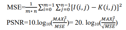 PSNR được định nghĩa thông qua sai số toàn phương trung bình (MSE – Mean squared error). MSE là một khái niệm trong thống kê học, nghĩa là sai số toàn phương trung bình của một phép ước lượng là trung bình của bình phương các sai số, nghĩa là sự khác biệt giữa các ước lượng và những gì đánh giá. Ở đây MSE được xác định cho ảnh hai chiều có kích thước mxn trong đó I và K là ảnh gốc và ảnh sau khi tổng hợp.