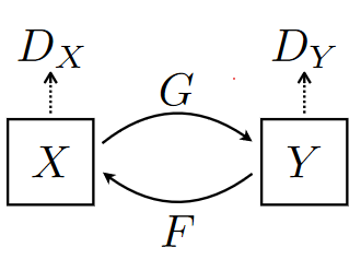 - : phân biệt ảnh lấy từ domain X và ảnh được translate F(y).