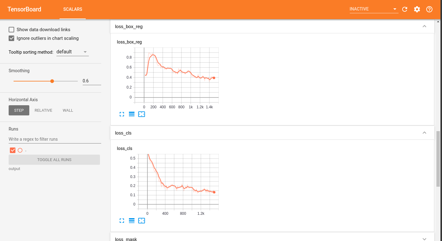 Sau khi train xong, để xem kết quả sự biến đổi các hàm loss trên tensorboard ta thực hiện câu lệnh sau: