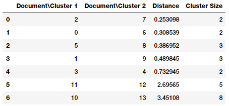 'Distance', 'Cluster Size'], dtype='object')