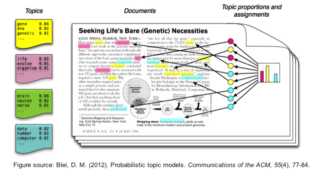 Chúng ta cũng có thể sử dụng một số kỹ thuật tổng hợp, tóm tắt để trích xuất các chủ đề hoặc khái niệm đặc trưng của văn bản. Ý tưởng về các topic models xoay quanh quá trình sắp xếp các văn bản vào những dạng chủ đề, khái niệm. Mỗi chủ để được biểu diễn dưới dạng là tập hợp của các từ/thuật ngữ có trong kho văn bản. Nếu chúng xuất hiện cùng với nhau các từ/thuật ngữ này sẽ biểu thị, tượng trưng cho một chủ đề hoặc khái niệm cụ thể. Chúng ta có thể dễ dạng phân biệt các chủ đề với nhau nhờ ngữ nghĩa của các thuật ngữ đó. Tuy nhiên, các chủ đề thường có sự chồng chéo nhất định trên dữ liệu. Các topic models sẽ cực kỳ hữu ích trong việc tóm tắt, rút gọn khối lượng lớn tài liệu, văn bản để trích xuất, mô tả các khái niệm chính nhất. Chúng cũng hữu ích trong việc trích xuất các đặc trưng từ dữ liệu văn bản để nắm bắt các pattern tiềm ẩn trong dữ liệu đó.