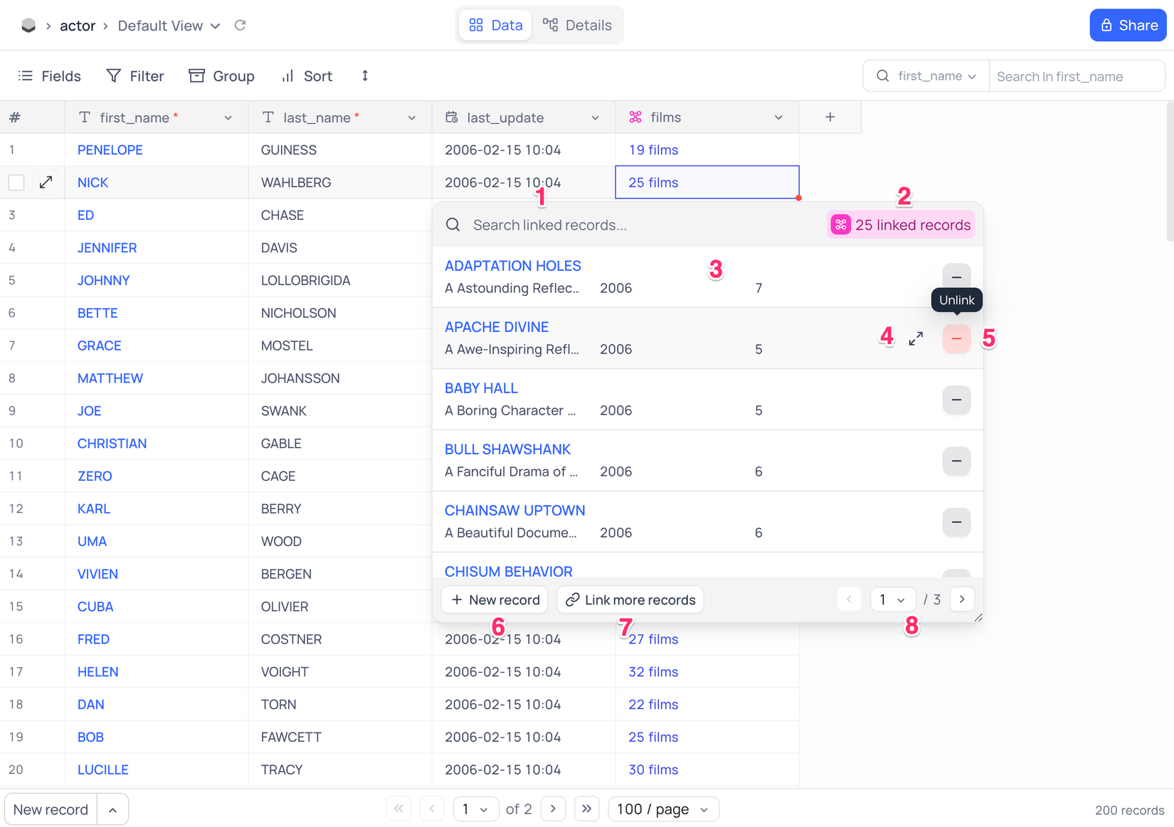 Còn vài chức năng khác, bạn có thể xem chi tiết trong link này: https://docs.nocodb.com/fields/field-types/links-based/links/