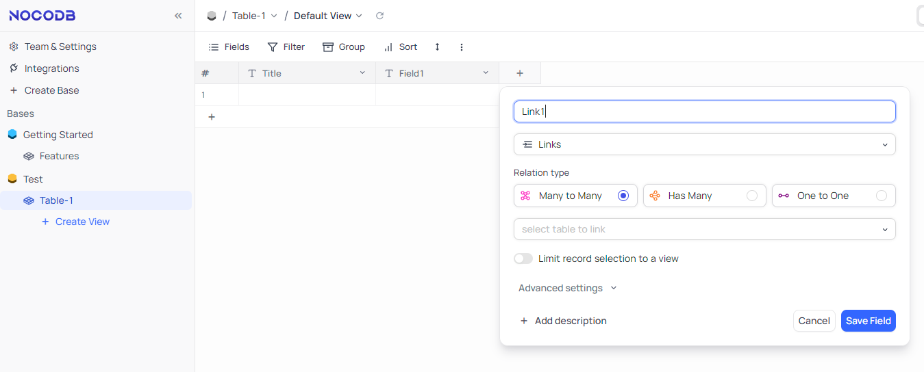 Trong cơ sở dữ liệu, bạn sẽ phải thường tạo mối quan hệ giữa các bảng. Cũng tương tự, NocoDB cung cấp một khái niệm gọi là Links