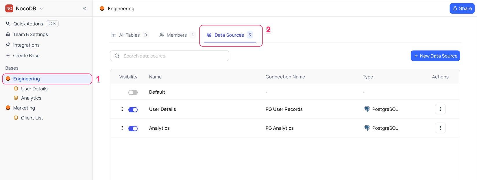 Còn vài chức năng khác, bạn có thể xem chi tiết trong link này: https://docs.nocodb.com/data-sources/data-source-overview/