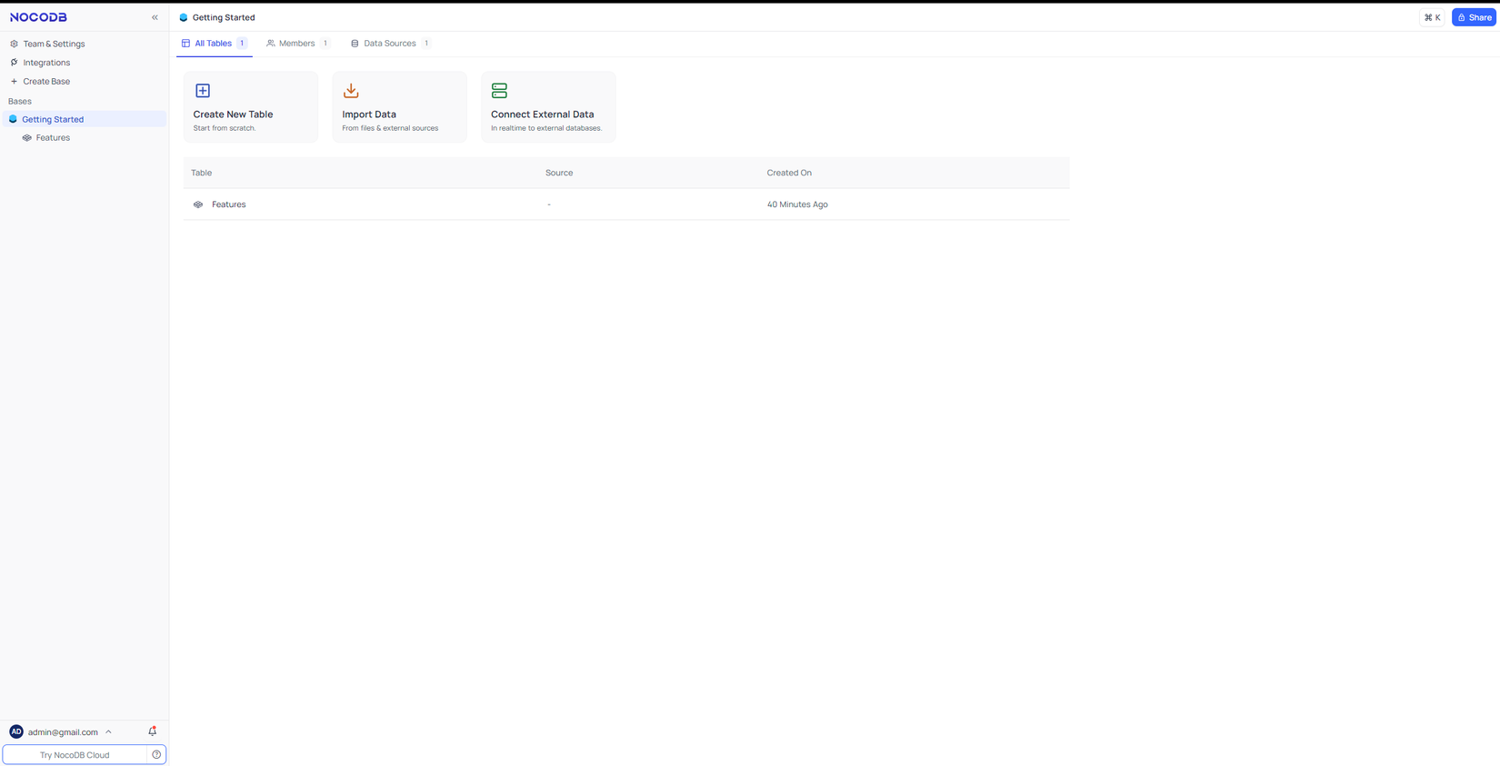 Trong trường hợp bạn không có server, bạn có thể trải nghiệm trên cloud của NocoDB