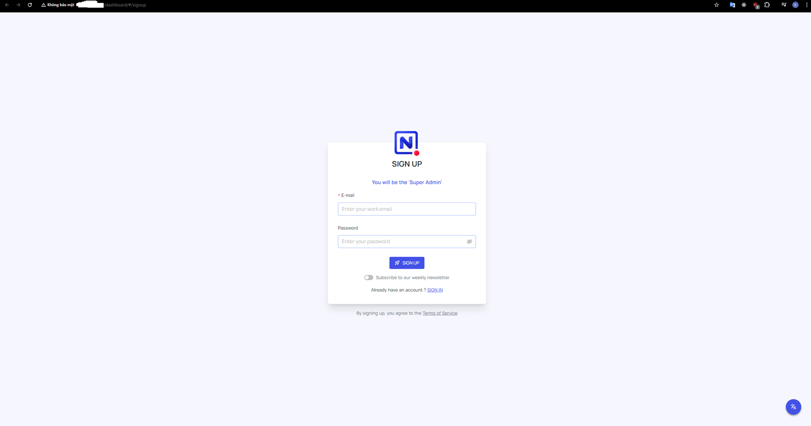 Okay, sau khi đã cài đặt xong nocodb, bạn có thể truy cập dashboard ui http://<địa chỉ ip/domain của bạn> trên trình duyệt. Giống với trang admin của Django, bạn cần đăng ký email/password (fake cũng được).
