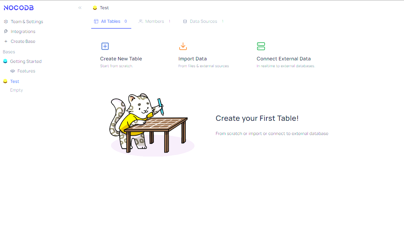 Điều đầu tiên khi làm việc với cơ sở dữ liệu cần phải tạo bảng. Bạn có thể tạo mới hoặc import từ json, csv, airtable, microsoft excel file.