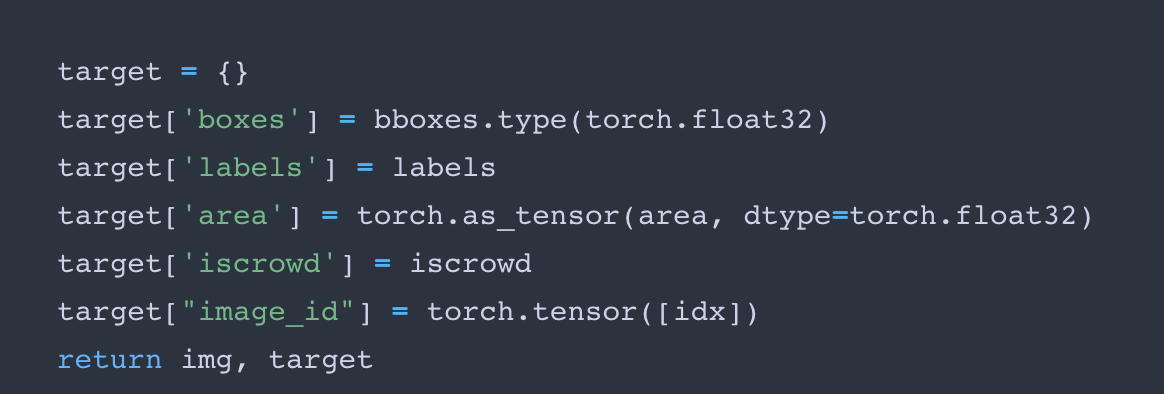 target['area'] = torch.as_tensor(area, dtype=torch.float32)