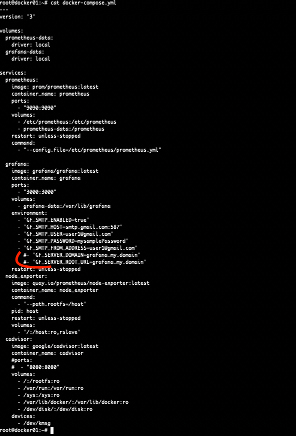 Xem qua file docker-compose.yml để ý biến môi trường nếu các bạn không dùng domain thì các bạn comment dòng biến môi trường này lại.