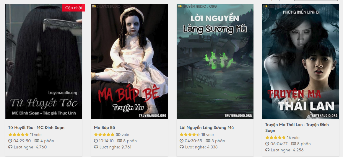 Bước này là bước quan trọng và cũng là bước mất nhiều thời gian nhất đó các cháu ạ. Để có được dữ liệu sạch thì các cháu phải bỏ công sức ra đi tìm những nguồn audio âm thanh có chất lượng thu âm tốt. Ở đây ông sử dụng giọng đọc của MC Đình Soạn - MC truyện ma mà ông khá thích để làm dữ liệu cho các cháu nhé. Các cháu có thể lên trang nghe đọc truyện để kiếm dữ liệu về. Mỗi một tập truyện dài của Đình Soạn có thể cho chúng ta gần chục giờ dữ liệu. Các cháu chỉ cần làm vài ba truyện là có đến mấy chục giờ dữ liệu thì cũng đủ để training một cái demo nho nhỏ rồi các cháu ạ.