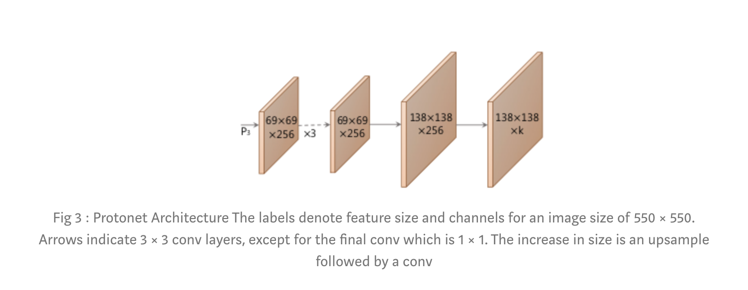 Prototype net là 1 Full-Conv xây dựng trên các feature FPN-P3 của FPN, trả về K prototype mask có kích thước được upsample gấp đôi.