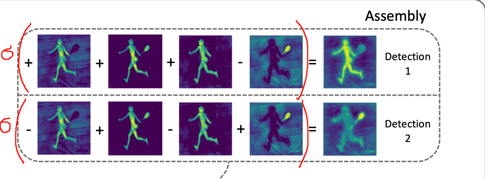 Để sinh ra Mask cho 2 đối tượng Person và Racket tại bước 7, ta cộng Prototype Mask theo hệ số của từng đối tượng. Giả sử có 4 prototype mask là M1, M2, M3, M4. Như vậy: