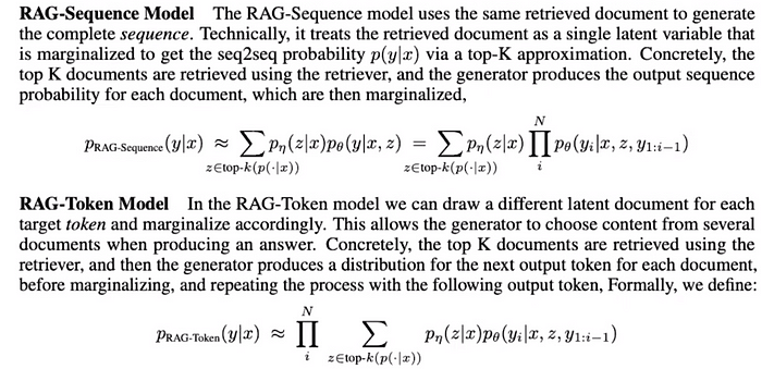 - RAG-token: Trong mô hình này, tài liệu được truy xuất tại các token mục tiêu khác nhau trong quá trình sinh văn bản. Điều này cho phép mô hình truy cập thông tin liên quan vào các thời điểm khác nhau của quá trình sinh văn bản.