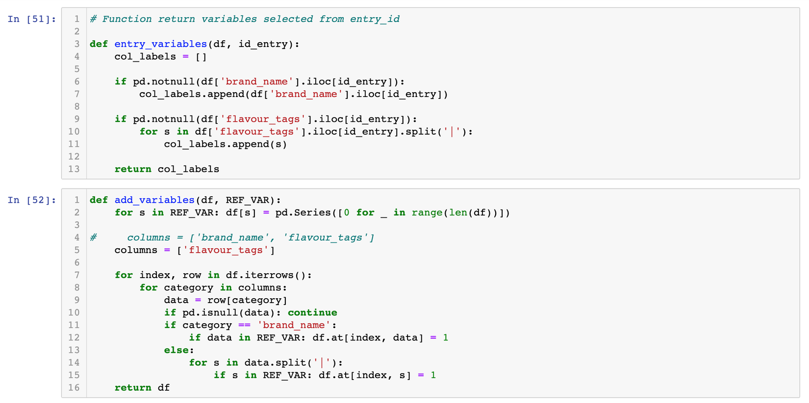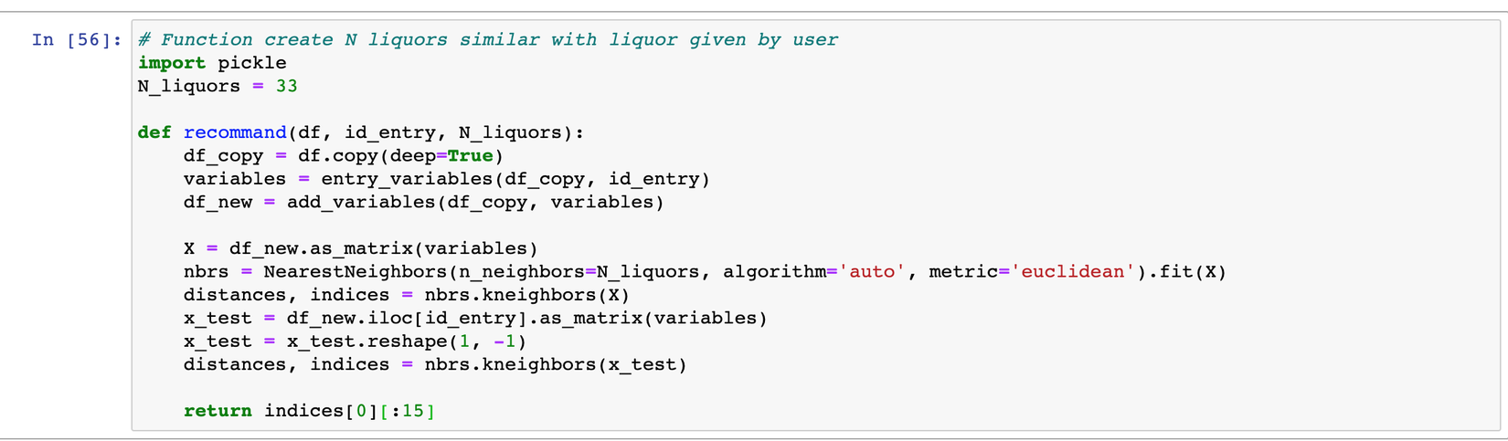 Sử dụng công thức này chúng ta có thể chọn ra Top N các liquor có độ similarity lớn nhất về tags. Cách làm này còn có 1 tên gọi khác là bag_of_word. Giờ cùng xem code nhé: