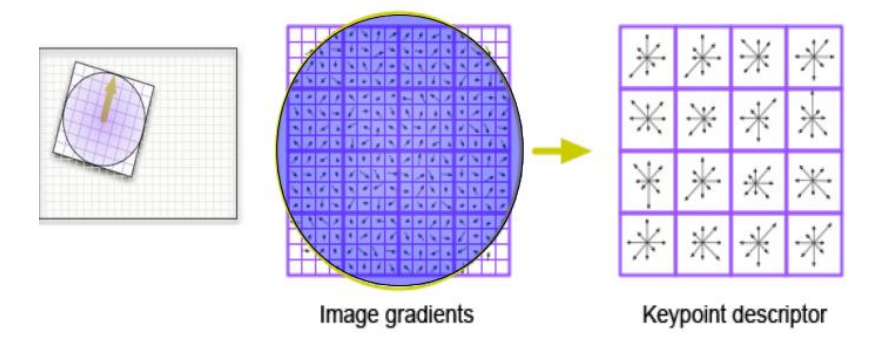 - Với đầu vào là một hình ảnh >>> SIFT >>> các keypoint. Mỗi đối tượng trong hình ảnh sẽ cho ra rất nhiều các keypoint khác nhau, để ta phân biệt được các keypoint này với nhau sẽ thông qua một vector 128 chiều hay còn gọi là descriptor. Các descriptor này sẽ được dùng để nhận dạng đối tượng trong ảnh, hay dùng cho các bài toán classication.