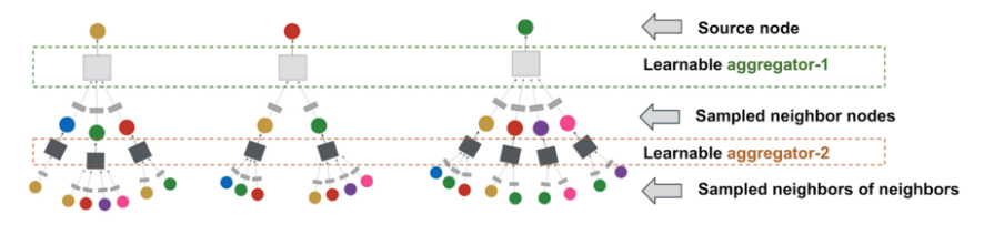 Node sẽ được tổng hợp từ các node lân cận với node và chính node . các node lân cận này sẽ được tổng hợp từ các node lân cận của chúng và chính chúng.
