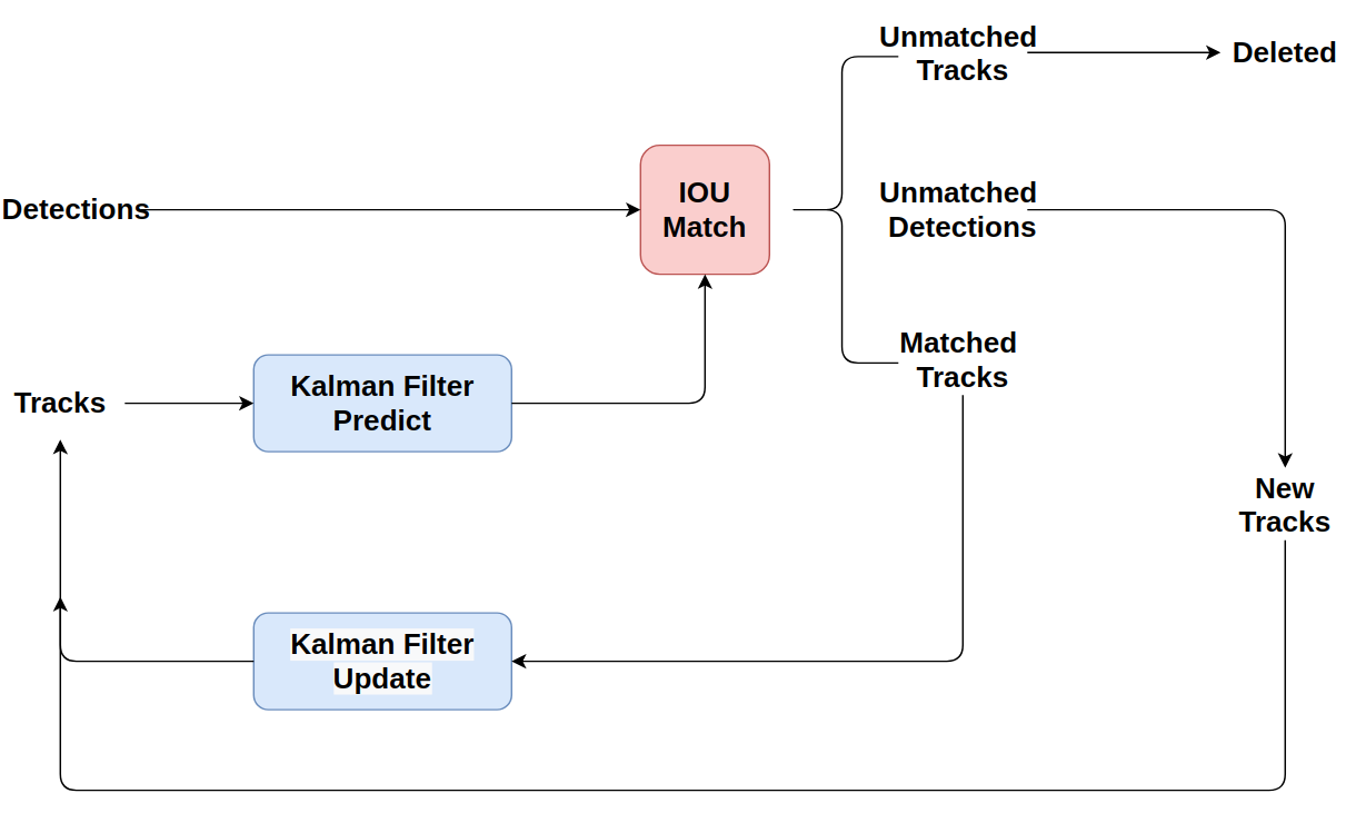 - Associate: Liên kết các vị trí detected với các vị trí dự đoán được để gán ID tương ứng