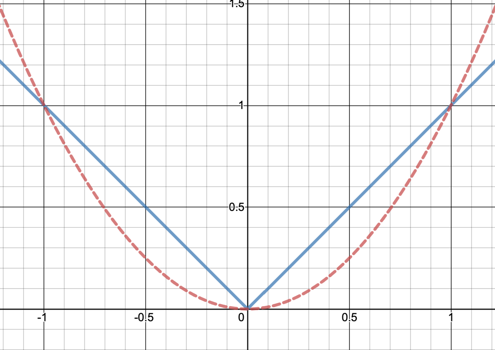 Lý do mà MAE làm tăng độ thưa thớt của mô hình? Một cách đơn giản dễ hiểu nhất là hãy nhìn vào biểu đồ sau: