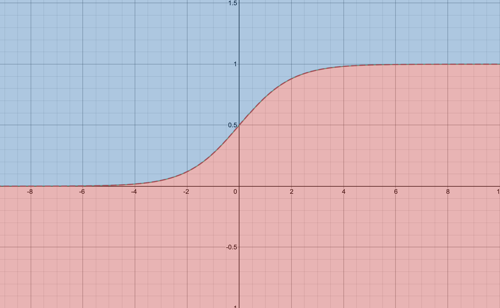 - Giả sử như hàm sigmoid được dùng để thêm sự phi tuyến tính, phân lớp như trên cho các điểm ở mục đỏ có giá trị , và ngược lại ở vùng xanh; trong khi ở bài toán phân lớp tuyến tính khi sử dụng sigmoid để tạo ra xác suất, chúng ta phân lớp bằng cách so sánh giá trị kết quả với .