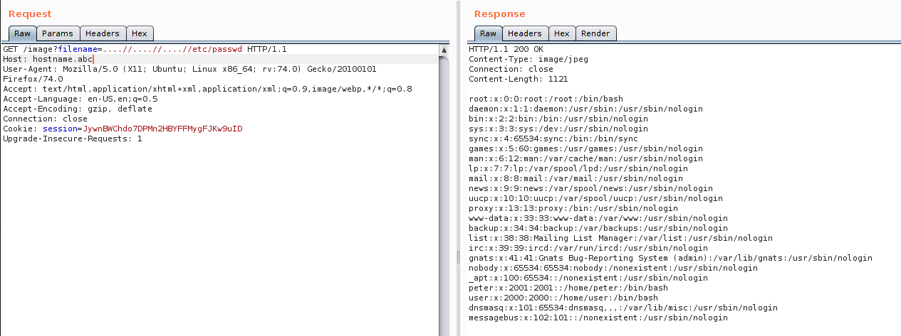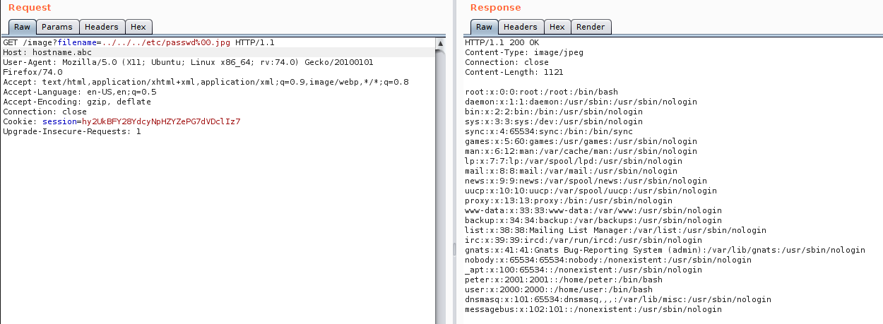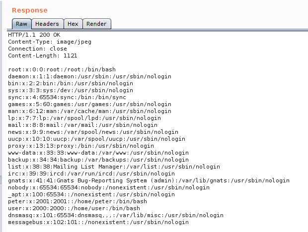 /var/www/images/../../../etc/passwdvới mỗi../là trở về thư mục cha của thư mục hiện tại. Như vậy với../../../thì từ thư mục/var/www/images/đã trở về thư mục gốc và file/etc/passwdchính là file được đọc. -