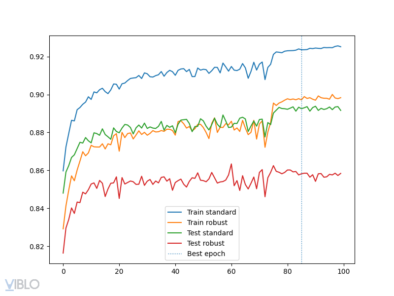 Tuy nhiên, chú ý rằng train một mô hình PGD-AT theo như paper sẽ mất thời gian gấp 10 lần so với train bình thường. Cũng dễ hiểu, vì mỗi một training epoch chúng ta phải sinh ra các adversarial example mới, và tốc độ hội tụ cũng sẽ chậm hơn do data thay đổi theo mô hình (cụ thể hơn là decision boundary), và cả 2 phải cùng kéo nhau hội tụ (chứ không phải 1 cái đã biết điểm tối ưu và kéo cái còn lại về đó). Trong thực tế, lúc mình train chỉ mất có gấp 3 lần thôi nên vô tư đi.