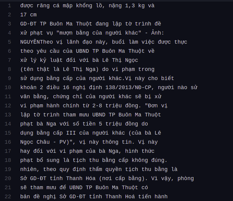 Dữ liệu text:là một file .txt chứa các câu văn tiếng Việt. Mỗi câu là một dòng trong file txt. Tool sẽ lấy dữ liệu trên từng dòng ghép với một font, một ảnh nền khác để tạo ra file ảnh tương ứng. Mình có cung cấp sẵn khoảng 500 sample. Các bạn có thể xem tại file test_data.txt.