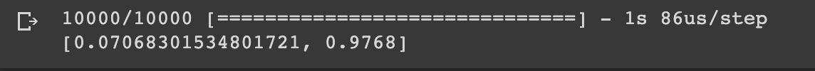 Tiếp theo là đánh giá model ngon hay không ngon dựa trên hàm evaluate của tf, nó sẽ show cho ra kết quả loss và acc trên tập test: