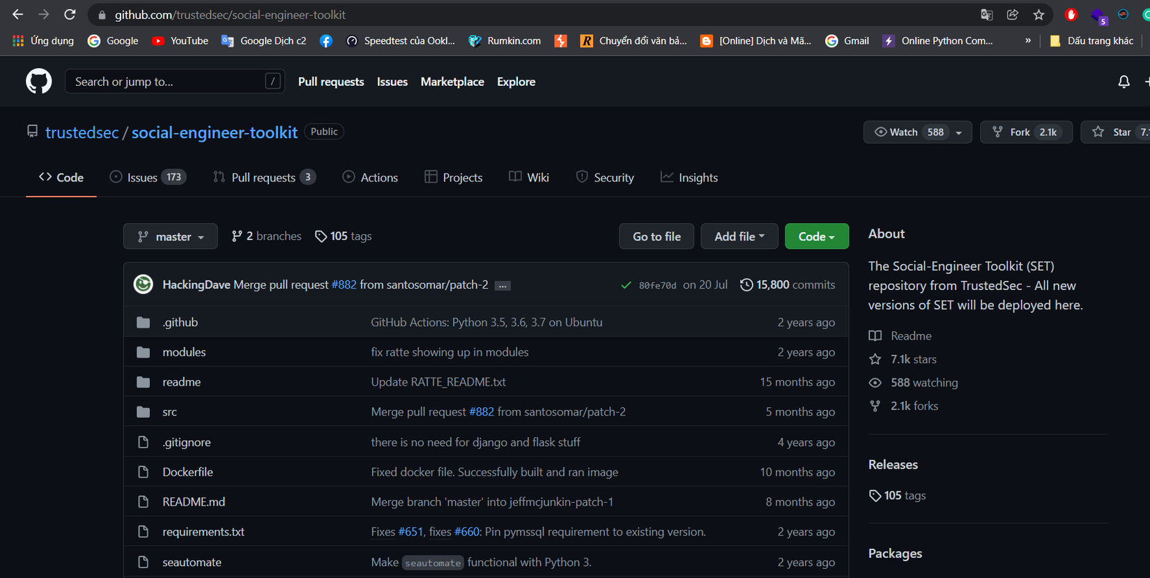 - Ta có thể tải trực tiếp thông qua trang chủ của dự án: Social-Engineer Toolkit - TrustedSec
