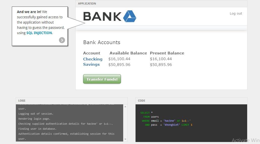 Thực hiện demo trên page https://www.hacksplaining.com/exercises/sql-injection