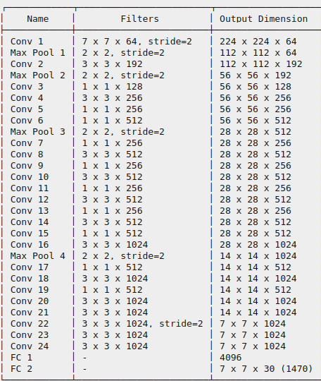 Như ta đã nói ở trên mô hình mạng YOLO là một mô hình mạng CNN thông thường gồm các convolutional layers kết hợp maxpooling layers và cuối cùng là 2 lớp fully connected layers, với hàm kích hoạt cho layer cuối cùng là một linear activation function và tất cả các layers khác sẽ sử dụng leaky RELU :