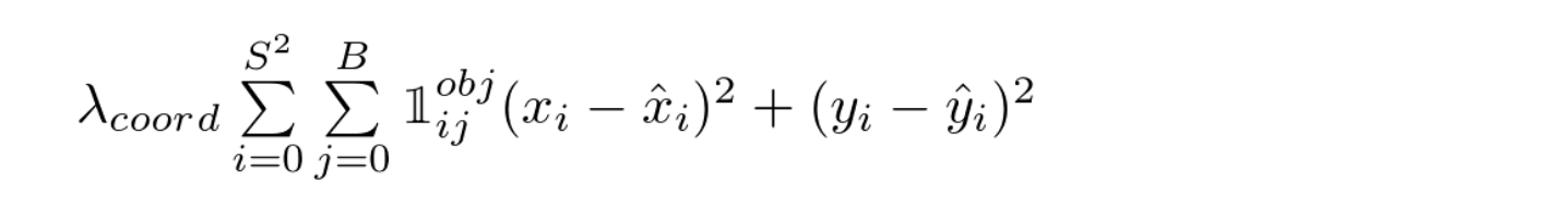 Giá trị hàm lỗi dự đoán tọa độ tâm (x, y) của predicted bounding box và  (x̂, ŷ) là tọa độ tâm của truth bounding box được tính như sau :