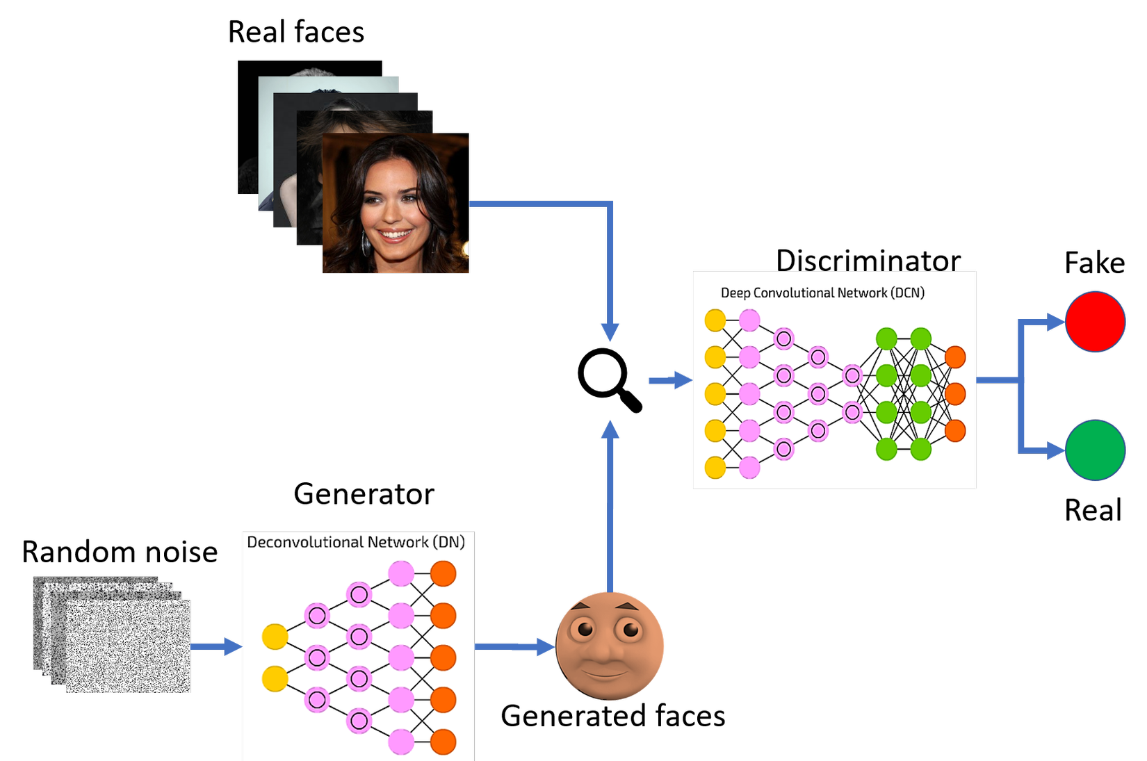 Generative Adversatial Network (GAN) là một trong những mô hình hot nhất hiện nay trong lĩnh vực deep learning với nhiều ứng dụng trong lĩnh vực sinh ảnh. GAN bao gồm 2 mạng neural cạnh tranh với nhau gọi là generator và discriminator. Nhiệm vụ của generator là đánh lừa mạng discriminator rằng ảnh do nó sinh ra là ảnh thật, còn mạng discriminator sẽ phân lớp giữa ảnh thật (từ bộ dữ liệu) và ảnh giả (ảnh từ generator).