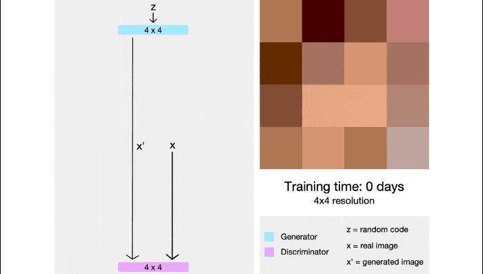 StyleGAN cũng tích hợp các kỹ thuật từ PGGAN, cả 2 mạng generator và discrminator ban đầu sẽ được train trên ảnh 4x4, sau nhiều lớp sẽ dần được thêm vào và kích thước ảnh cũng dần tăng lên. Bằng kỹ thuật này, thời gian huấn luyện được rút ngắn đáng kể và quá trình huấn luyện cũng ổn định hơn.