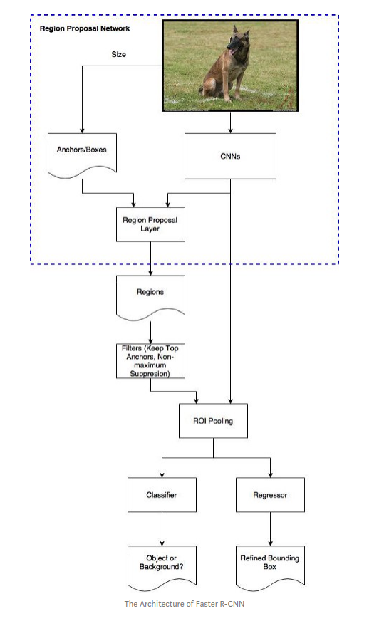 Trong bài viết này mình sẽ cùng các bạn triển khai và giải thích chi tiết hơn các phần cơ bản của thuật toán faster rcnn. Chúng ta cùng xem lại kiến trúc tổng quan của faster-rcnn theo hình dưới đây: