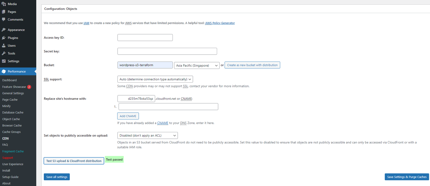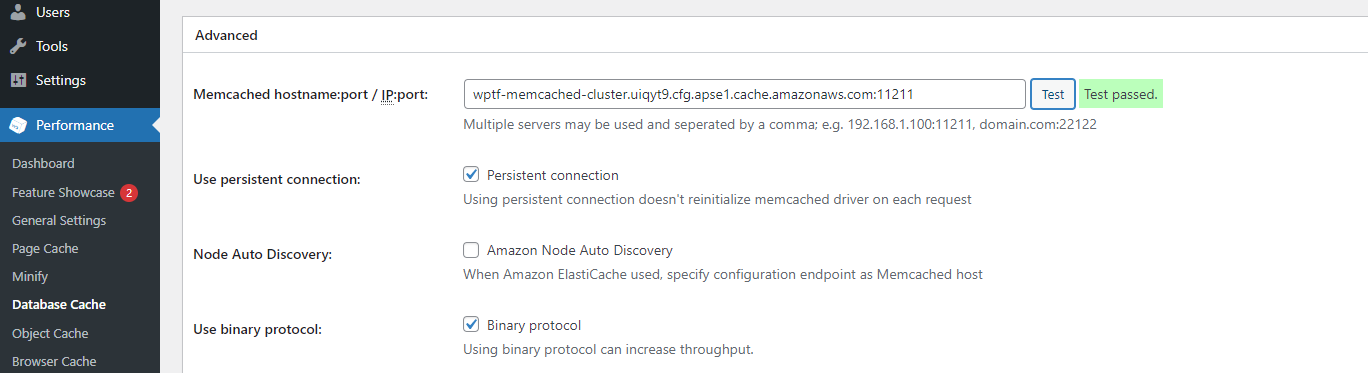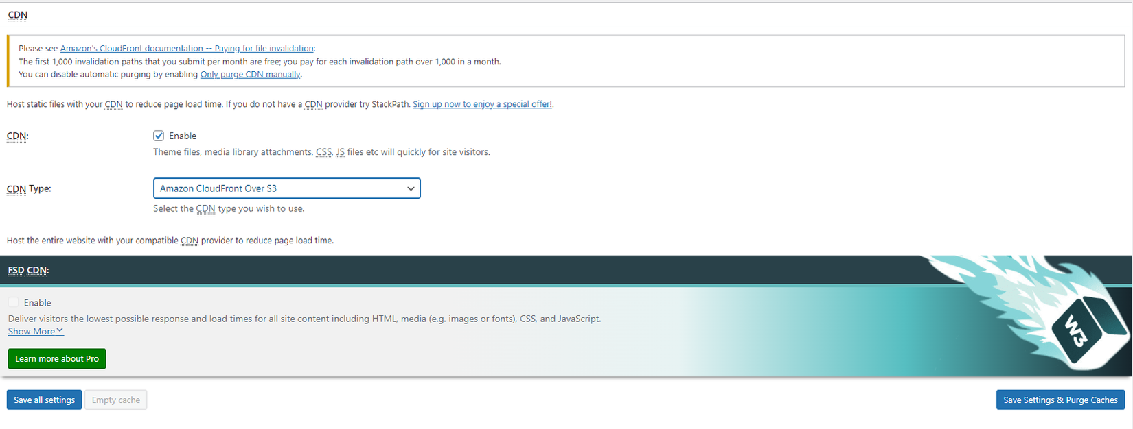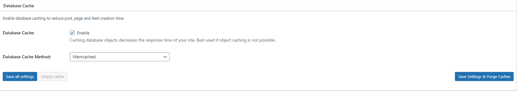 Enable Memcached và CDN trong General Settings của W3 Total Cache