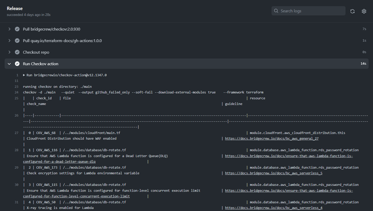 Checkov sẽ kiểm tra xem các tài nguyên được tạo ra có đáp ứng được yêu cầu bảo mật hay không, nó cũng sẽ đưa ra các recommend cho developer thực hiện :