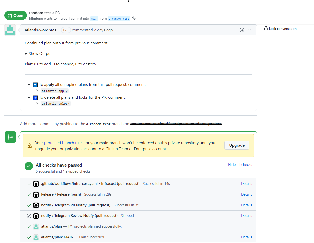 Song song với việc triển khai các tài nguyên, việc quản lý chi phí triển khai và vận hành cũng là một vấn đề cần được kiểm soát. Tự động dự toán chi phí với các resource được tạo ra bởi Terraform sử dụng infracost.io ngay trên Pull request, điều này giúp cho team dễ dàng phân tích các chi phí trước khi có những thay đổi.