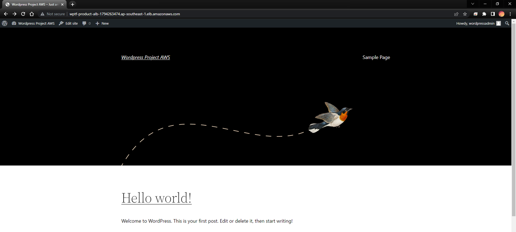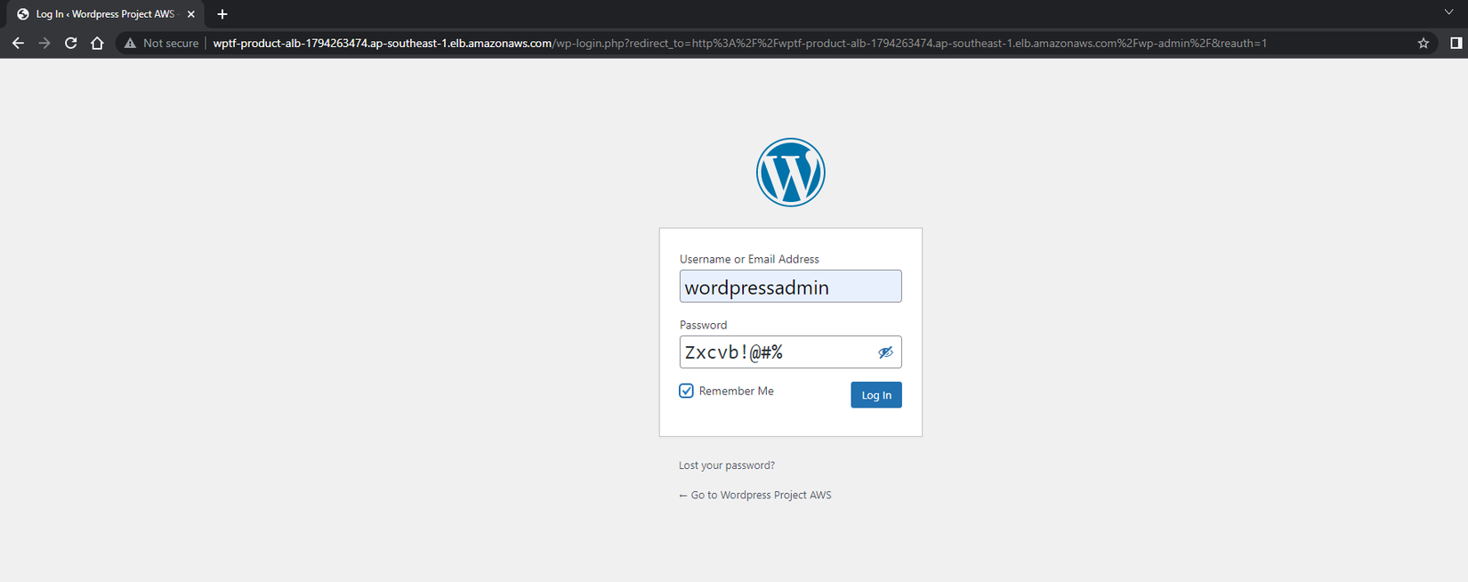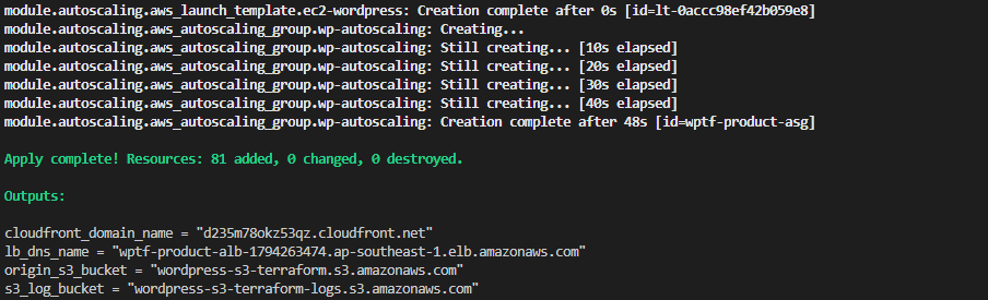 - Sau khi apply, Outputs sẽ cho ra các dns tương ứng. Truy cập vào wordpress webserver với dns = lb_dns_name