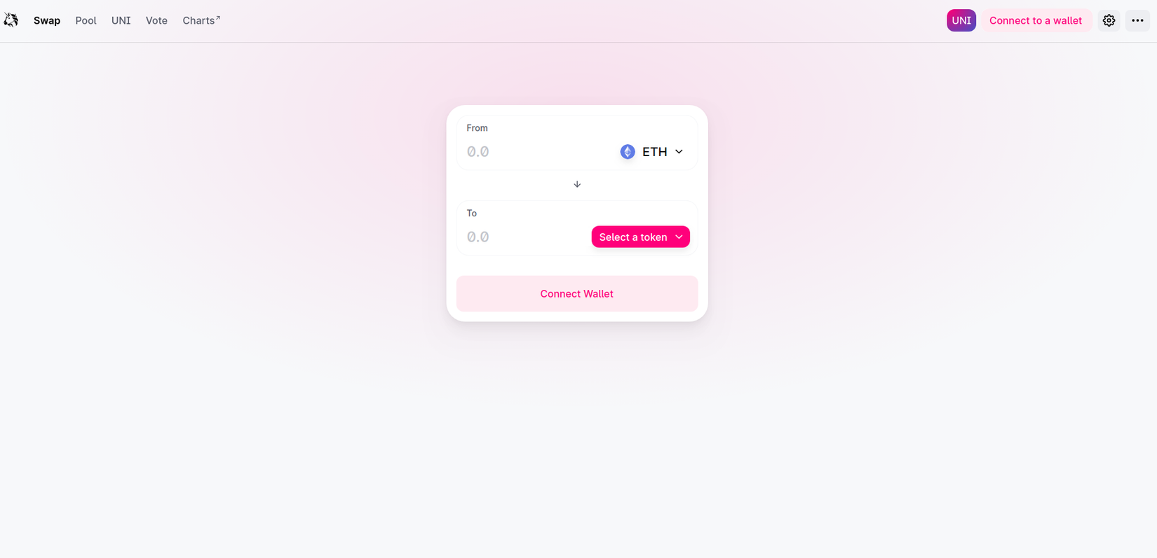 Ngay lập tức Uniswap đã được mọi người chú ý vì điều mà họ làm nó giống như một vụ nổ vậy, một chiêu bài marketing rất chi là thành công mà chẳng mất gì. Thì hôm nay mình sẽ cùng mọi người đi vào tìm hiểu về Uniswap để những bạn nào con chưa biết về nền tảng này có thể hiểu về nó, biết nó vận hành ra sao và những sự đơn giản đến vi diệu nhưng vẫn tạo ra hiệu quả đáng bất ngờ bên trong. Nhìn trang web đơn giản như thế này thôi nhưng cả một bầu trời tri thức đấy.
