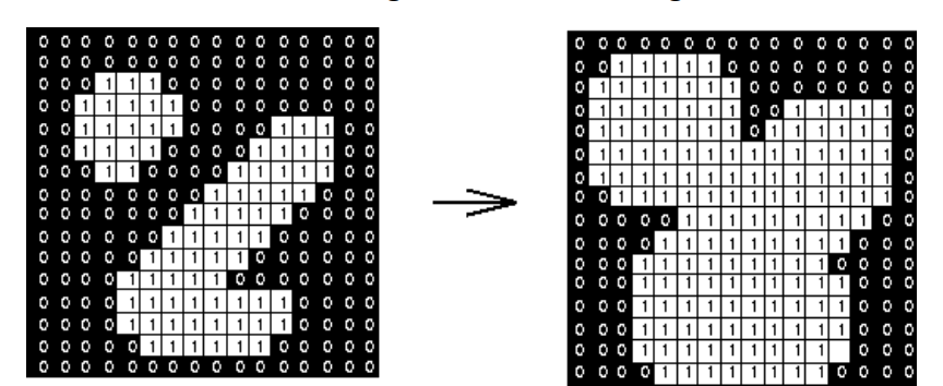 Dilation hay còn còn là sự giãn nở là toán tử còn lại mà đã nêu ở trên, nó ngược lại với erosion cũng được áp dụng trong các ảnh nhị phân. Mục đích của phương pháp này  sẽ giúp: